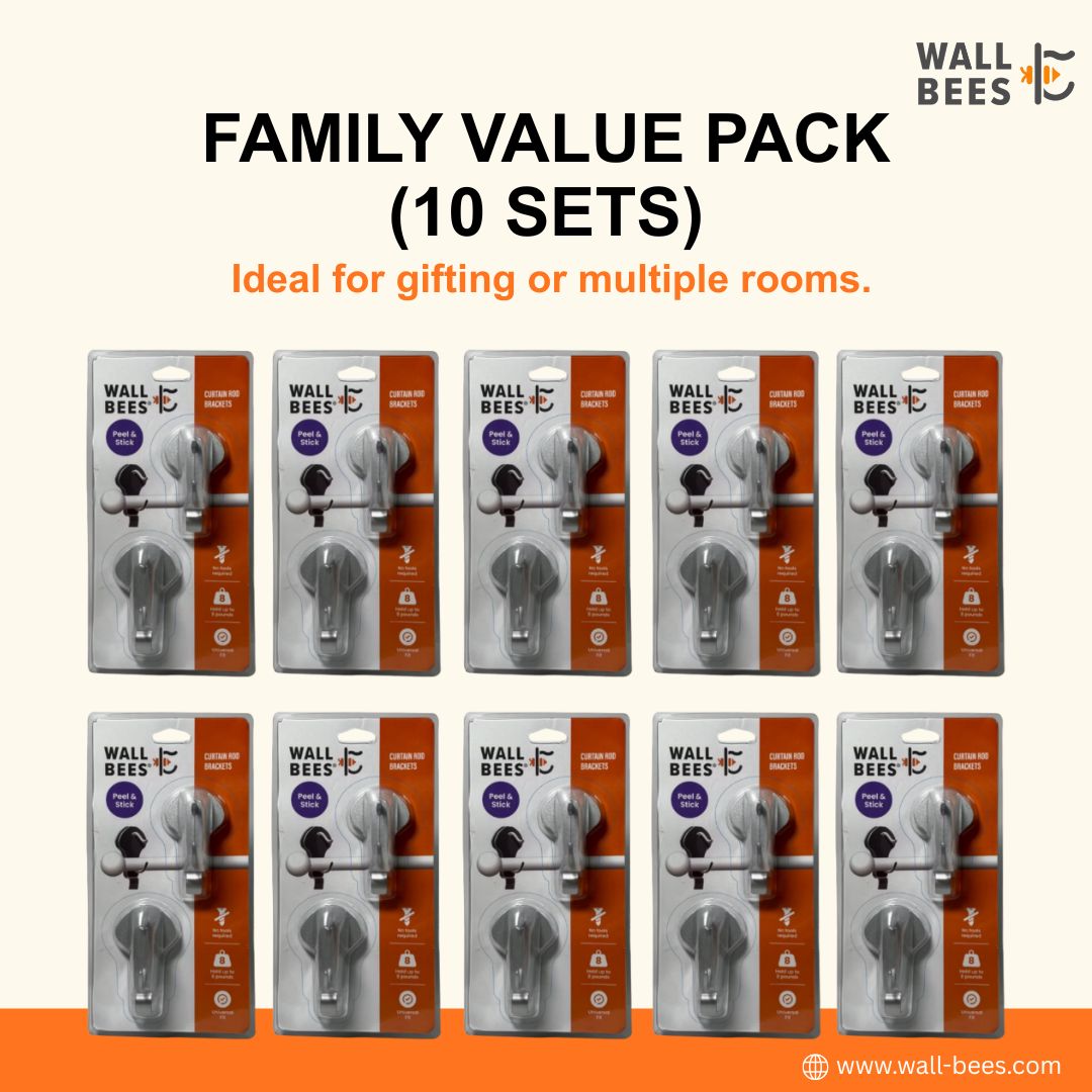 Experience ultimate convenience with the WALL-BEES Family Value Pack (10 Sets) – the perfect curtain rod bracket bundle for big families, multi-room homes, or gifting. Designed for strength, style, and simplicity, this 10-set pack offers a complete wall-mounting solution that’s 100% drill-free and damage-free.
